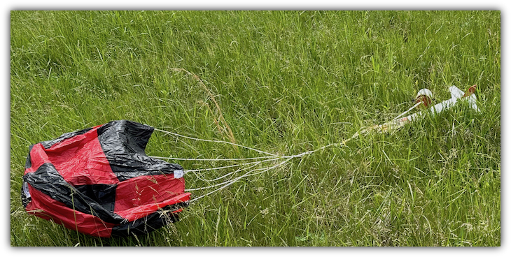 Due to the added weight of the payload section and the two extra cameras the L1 only attained an altitude of 812' so even with the winds, recovery was easy.