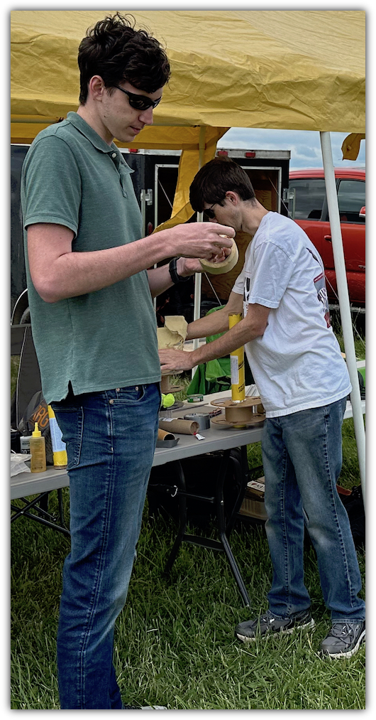 Debate continued as to why spool type rockets are stable. Joe Pscolka said "It seems as if the thing should spin and spiral out of control but it doesn't". One theory is the the air swirls in between the sides of the spools and as the air moves back out of the spools interior it does so in a manner even enough to keep the spool in an upright orientation.