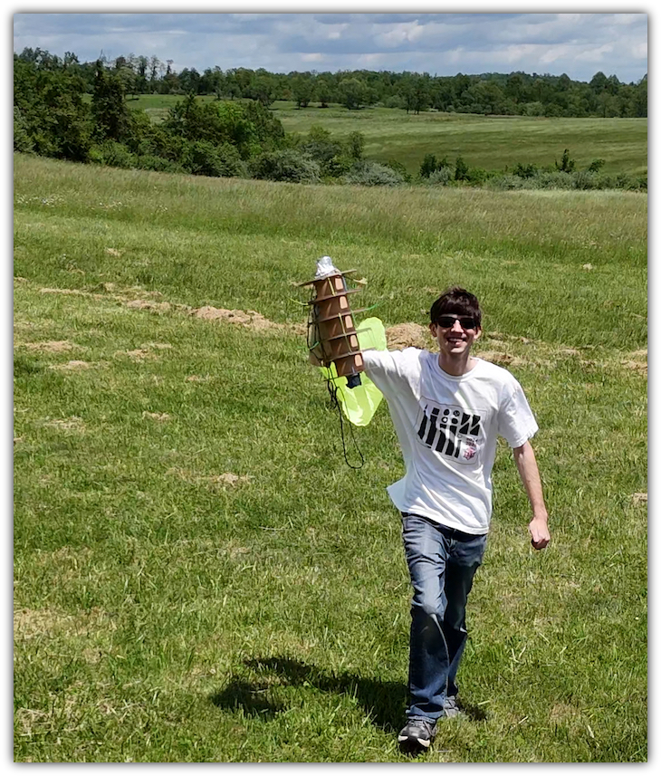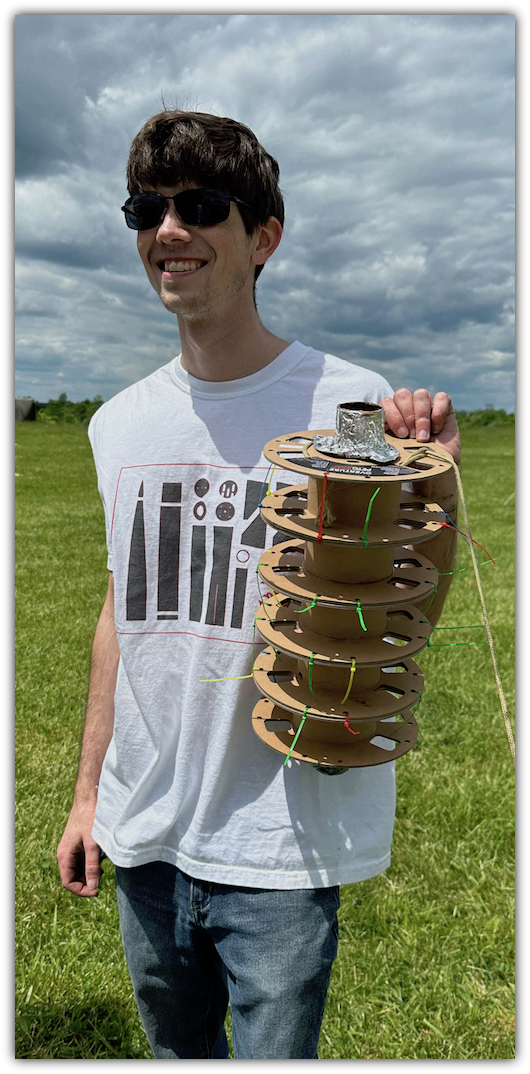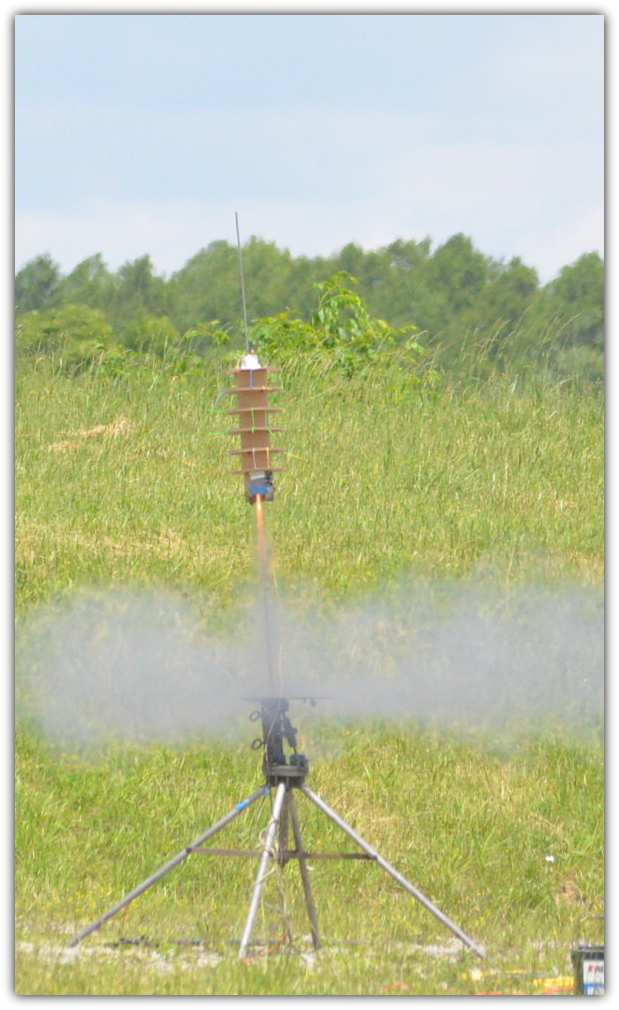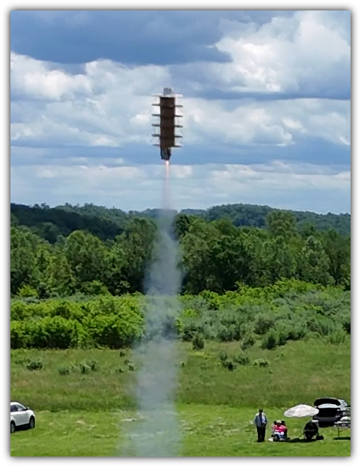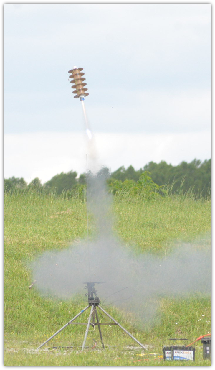 One of the more novel and creative rockets to fly at the TRIPOLI Pittsburgh Dragon's Fire Field was CMU student Derek Baiche's Flying Danebus constructed at the field.