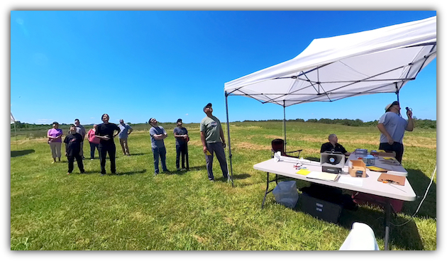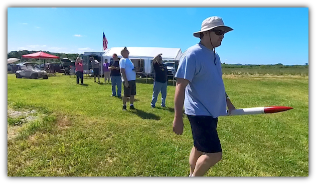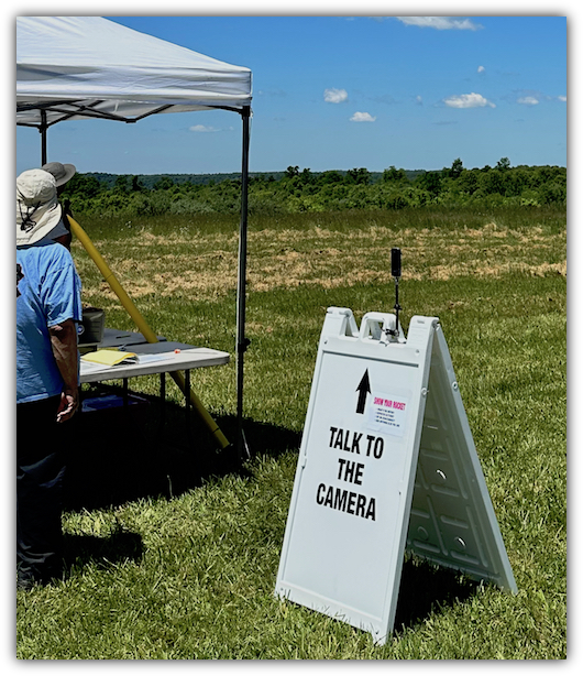 Clamped atop the sign is a 360 degree camera that can record all around. So flyers can stand anywhere around the camera and introduce their rockets. The sign will return for future launches!