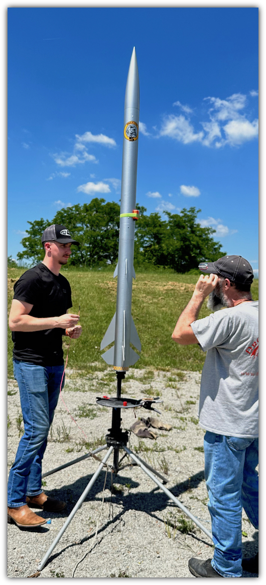 Kian Kissinger is the youngest son of veteran TRIPOLI Pittsburgh flyer Scott Kissinger and has been coming out to the launches for a couple of years helping his father fly. Kian flew his Level 1 certification in May of 2021 and at the May 2024 launch he attempted his Level 2.