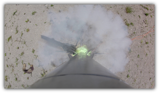 The Falcon 5 is scratch built with a 4" diameter and a length of 7'8", weighing 8 lbs. it is loaded here with an Aerotech J500 Green.