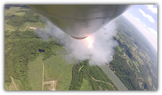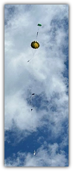 The Falcon 5. drifts perfectly back to earth on a 60" semi-hemispherical Dragon Rocketry parachute.
