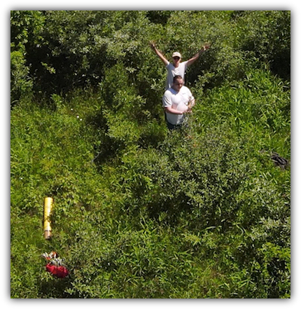 As is common these days, the brush kept the Big Nuke from being found through traditional search methods and the drone crew needed to be called in.