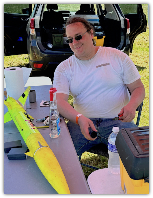 Casey has a rack for his rockets that he sets up for each launch and May was no exception, which explains (at least in part) why he is always in the running for the George Pike Award. Casey flys a lot of rockets. And this year it seems as if he is vying for yet another award.