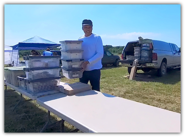 Jerry Andre schleps a bin while Casey and the rest empty bins.