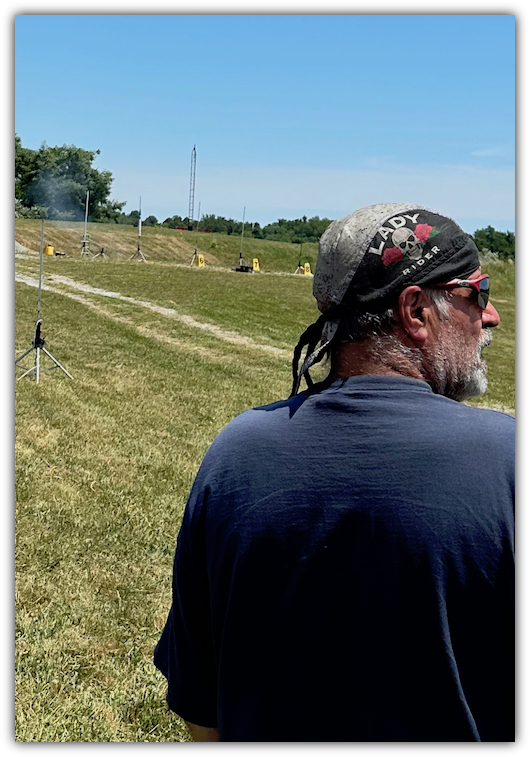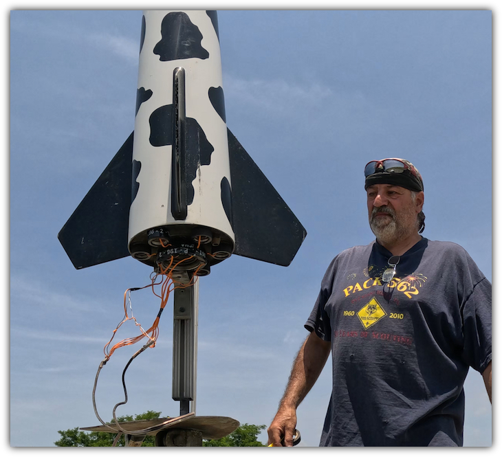 John Haught in the pits with his Hot Sauce saucer/bottle type rocket.