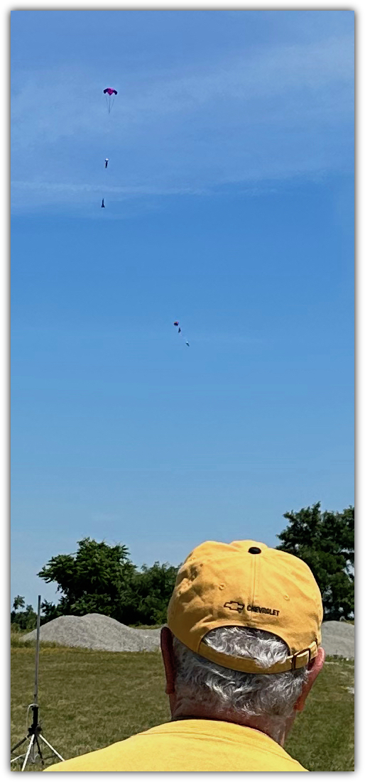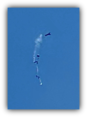 The main charge separates the rocket from the nose cone (left) and the two recover under their own parachutes (below).