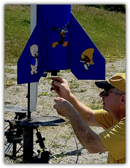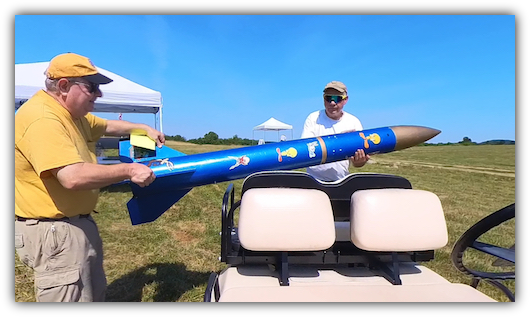 Rob's assistant helps to load the Loony Tunes onto the transporter for hauling to the high power pads.