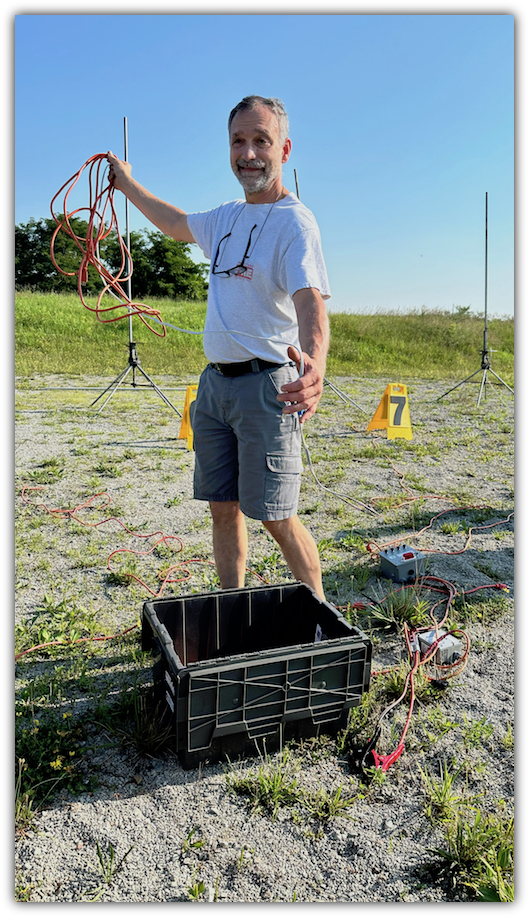 Joe Pscolka sets up at the high power pads at right while Jerry Andre and Rob Camele work on the low power pads below.
