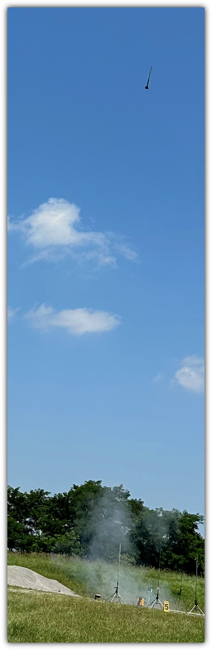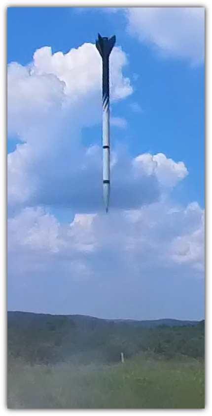 The Scottie Jr Sr of Derrek Baiche coasts to its apogee at about 85' before turning nose-down and heading for the rockpile.