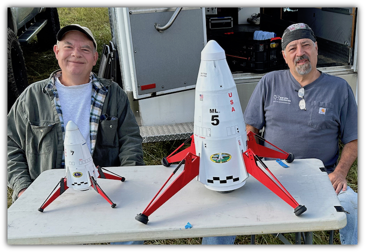 TR Garman sits behind the "little" Mars Lander from a kit by SemRoc. The SemRoc version is based upon the original Estes Mars Lander from 1969.