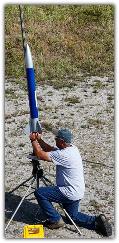 Newer member Dave Stoudt loads up his LOC IV with an H-219 at the high power pads before a beautiful launch.