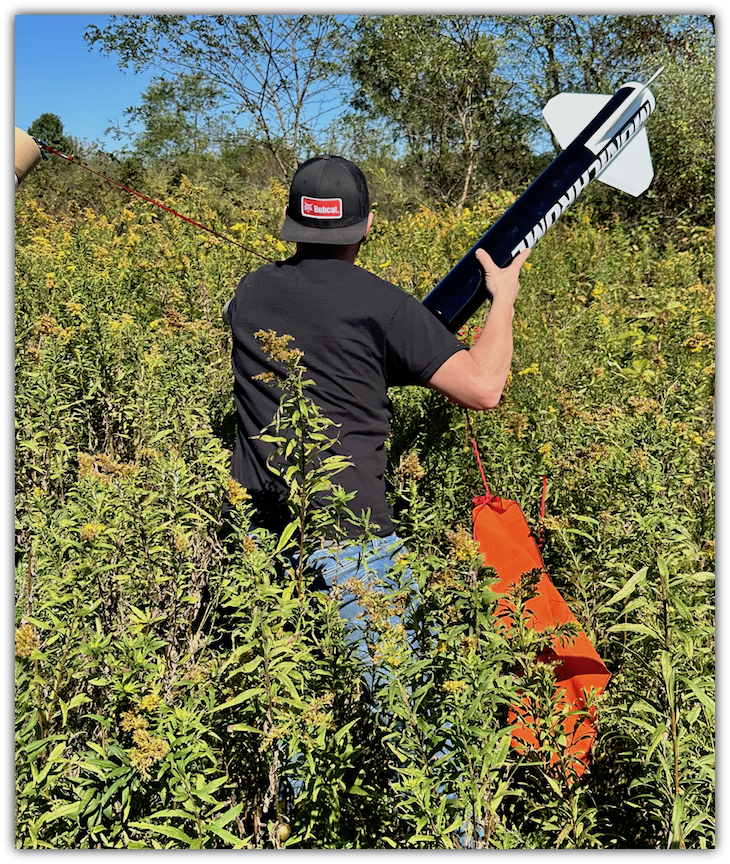 Newest TRIPOLI Pittsburgh member, William "Curtis" Detweiler poses below with his Level 1 Certification rocket named Monichrome.