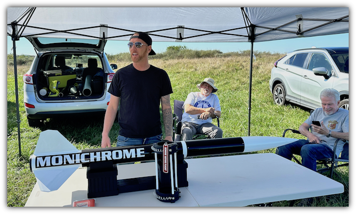 In addition to the modifications and rail guide, the Monichrome features an auto body paint job and custon vinyl graphics that make Curtis' bird one of the best looking L1 rockets ever to fly at the Dragon's Skull Field.