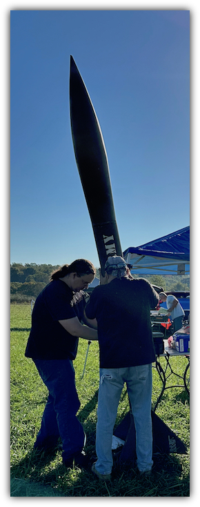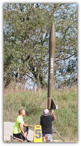 Standing nearly 10 feet tall, with a 7.5" main airframe diameter and a weight of just over 50 lbs empty, the Honest John is a handfull just to haul to the field.