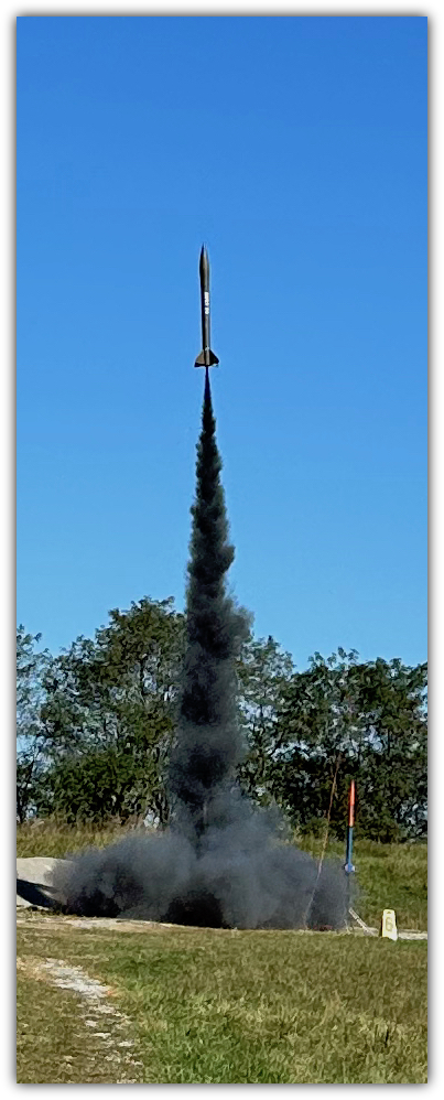 John's Honest John lifts off on a 3 grain, 76mm, L-999 motor made with Dark Horse propellant.
