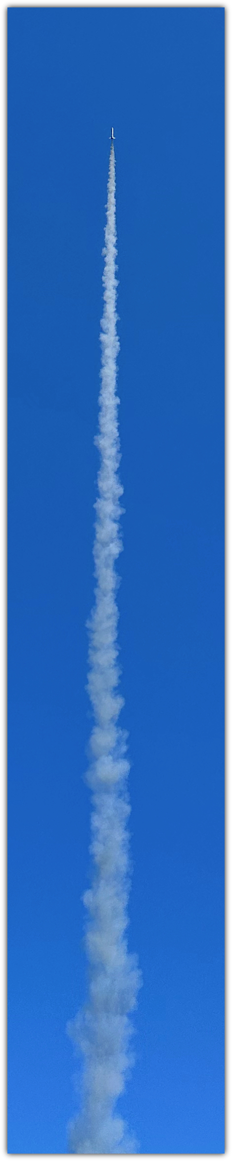 The booster wins the race to the ground but it was the nose that John was able to locate after his first trip behind the trees.