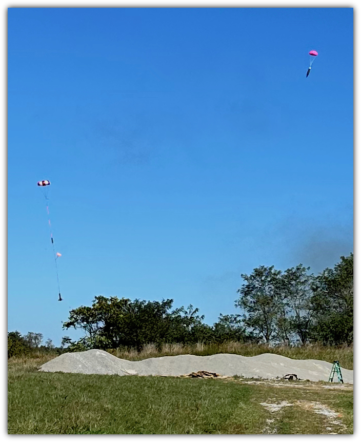 John likes to rig his bigger rockets with separate parachutes for the nose and booster.