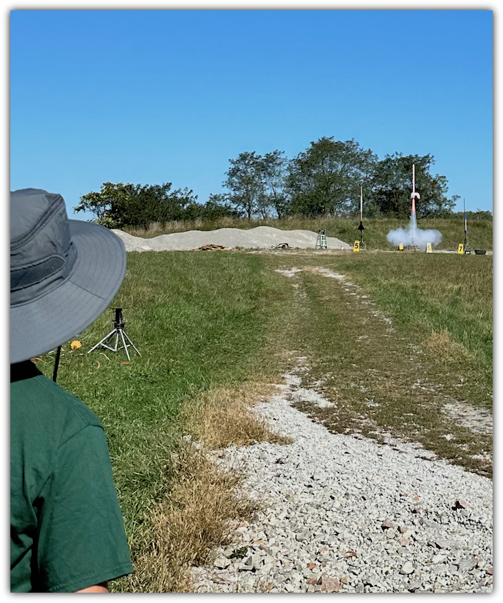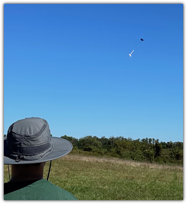 Winners of the 2024 George Pike Award, Emmett and Brian White were out and flying in October. And while they had a number of flights in October, thier biggest was the signature Pig rocket.