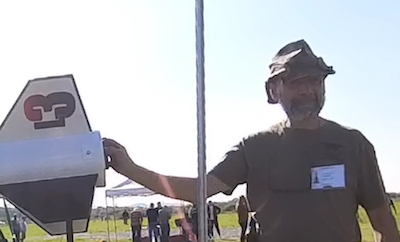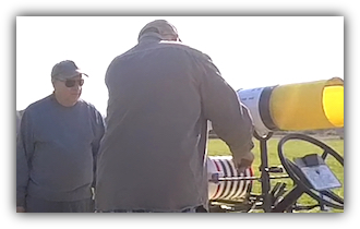Eddie Zelenick helps TR unload the L3 from the hauler and onto the tower while Scott Kissinger and his son get ready to assist. Joe Pscolka watches and inspects to make sure everything is done safely and correctly.