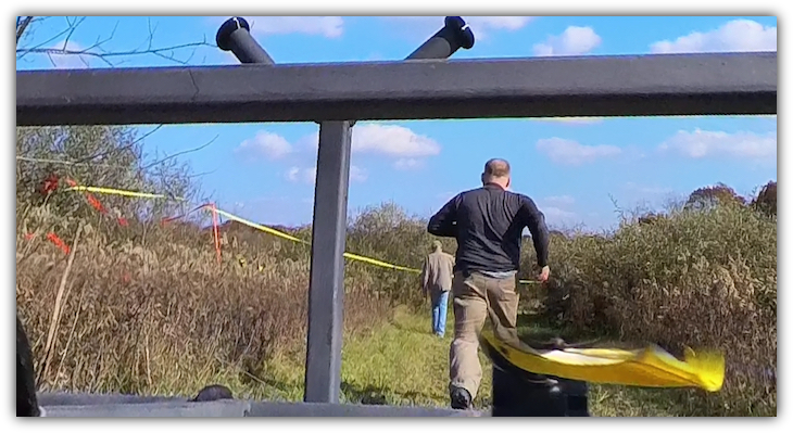 TR and Eddie headed out knowing roughly where the L3 came down but it was the bright yellow shock cord stretched across the path that was most visible (see pic below).