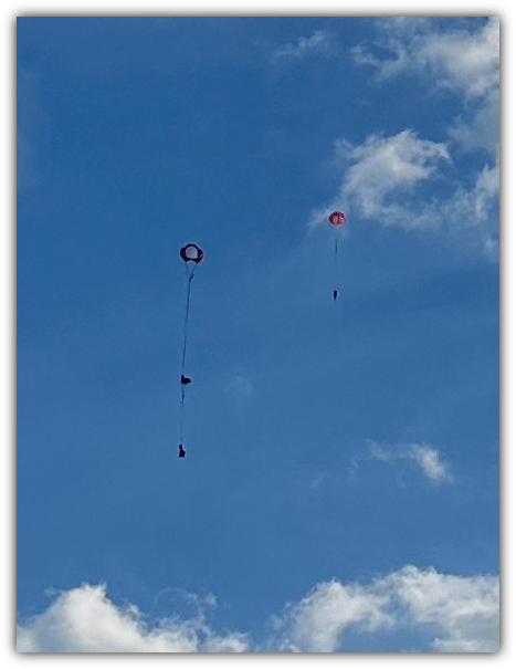 John rigged the big Sumo with separate parachutes for the nose cone and rocket booster.