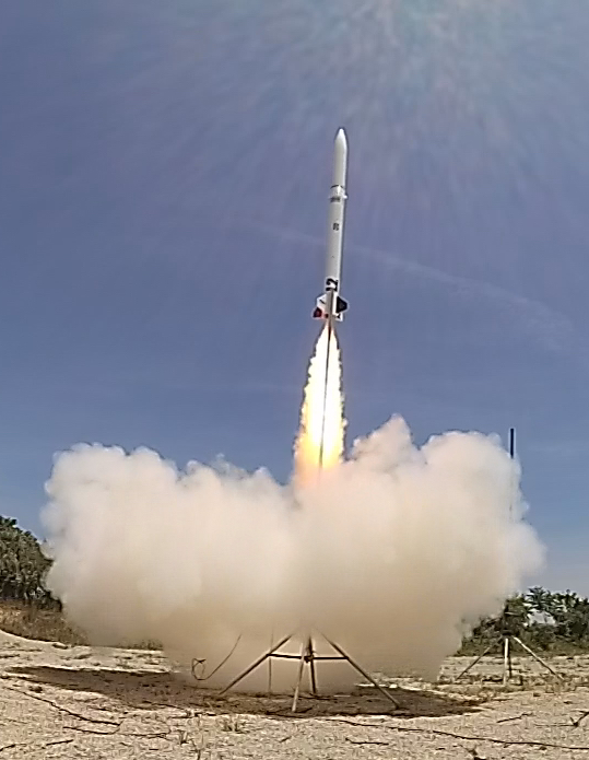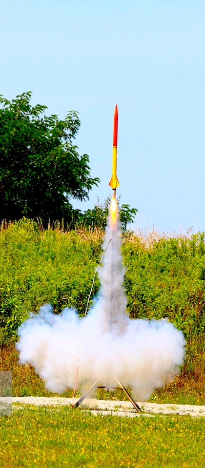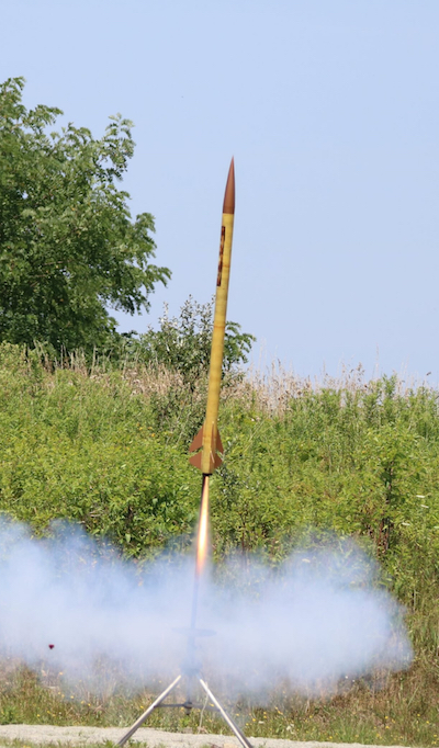 TR Garman's L2 rocket lifts off on a J 570 for a level 2 re-certification flight. About 2300' altitude.