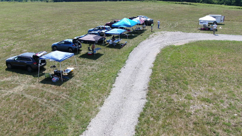 The red/blue rocket to the left won the closest to the pin contest of the day, coming down about 50' from the launch pad.