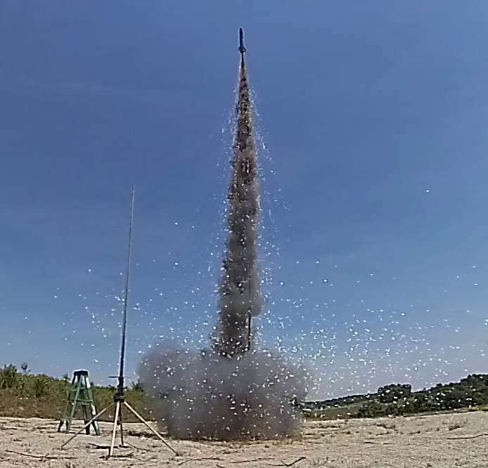 Sparks fly as Rocket Rob Camile's PML Stryker takes to the air on an AeroTech H 178 Metal Storm.