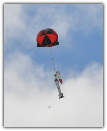 Due to the added weight of the payload section and the two extra cameras the L1 only attained an altitude of 812' so even with the winds, recovery was easy.