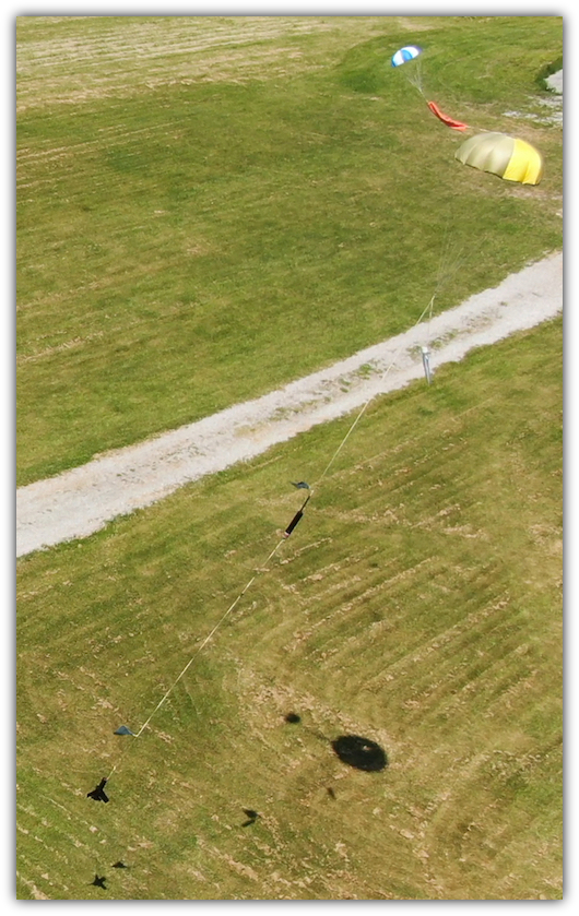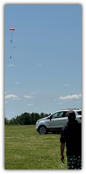Scott Kissenger's Guardian returns under parachute for an easy recovery within the infield.