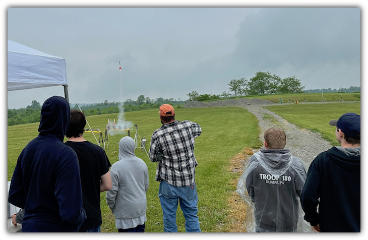 The Boy Scouts, Troop 180 out of Dunbar, PA had numerous attendees, many of who flew their rockets to attain a "Space Command" badge.