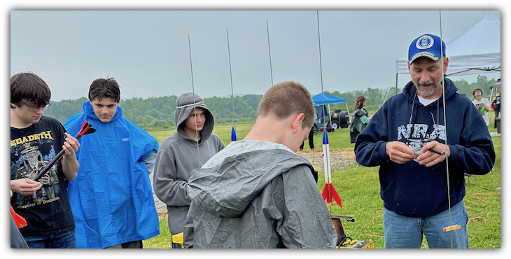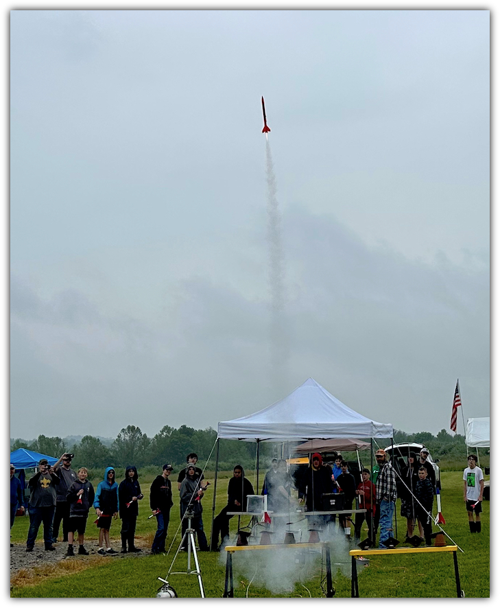 Saturday saw rain early and for much of the day. The skies did clear however and the Boy Scouts and TRIPOLI Pittsburgh members were able to fly rockets.