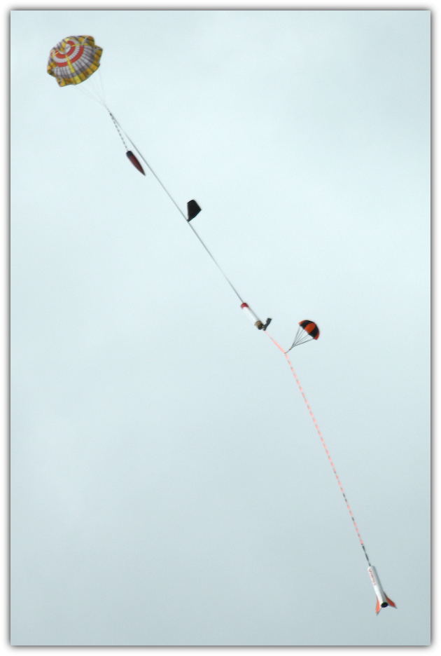 Steve Howard keeps an eye on the Emerald Fire as it returns under parachute.