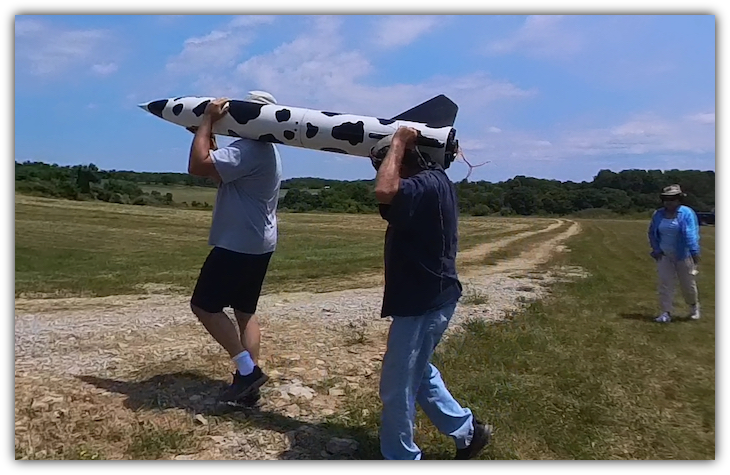Kevin and John haul the jumbo Holy Cow out to the high power pads.