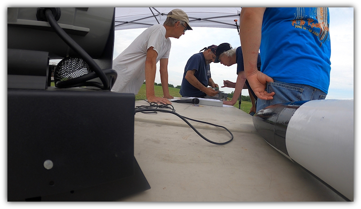 The TRIPOLI Pittsburgh club rocket, the Red Dragon launched on Saturday on an M-1533. The motor, brewed by motor expert Joe Pscolka (loading at left), was composed of NASSA Violet propellant.