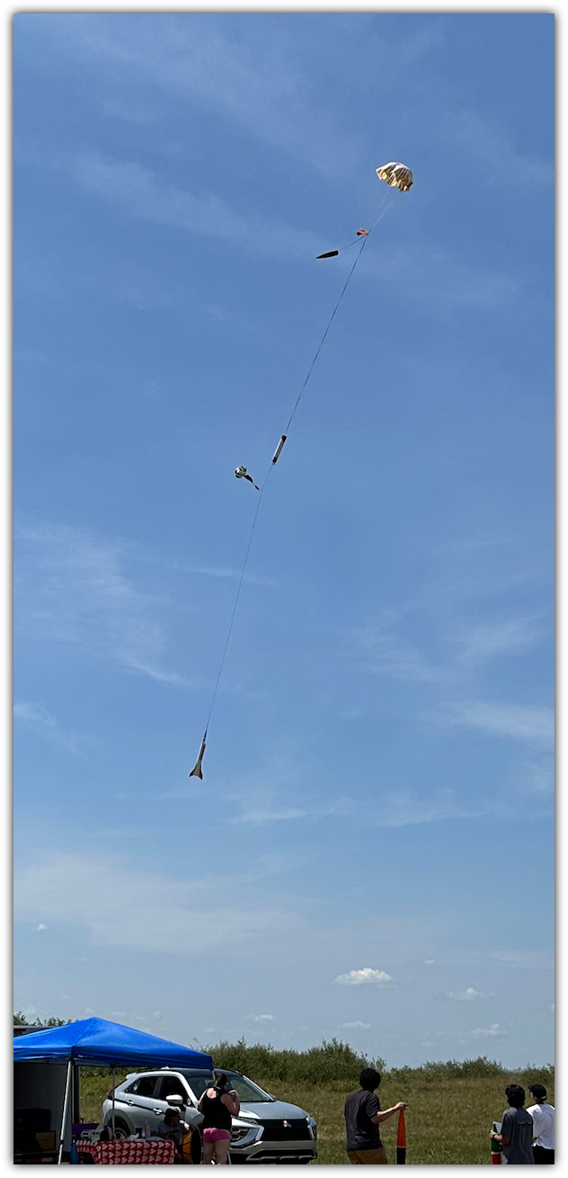 A good long shock cord means that even if Rob's Mega Initiater lands in the tall brush, he can usually pull it down.