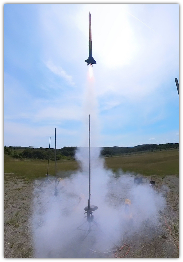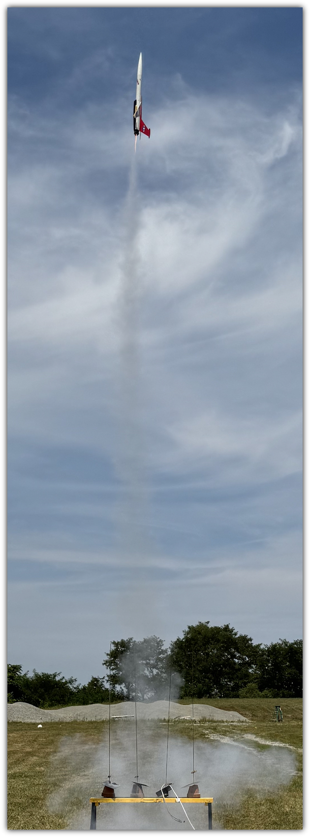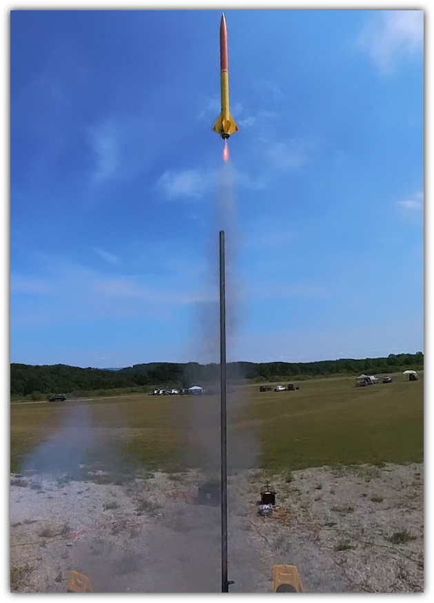 Lifting off on a G-71 motor the 20+ year old rocket seems to have aged well.