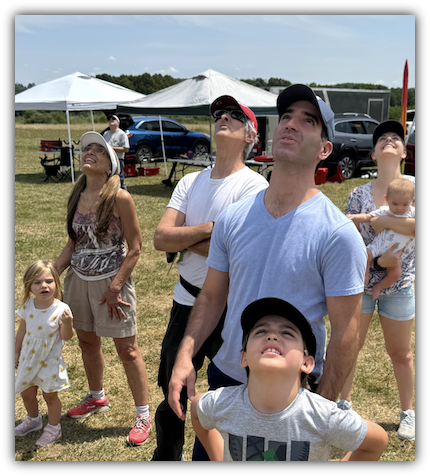 Tom and family watch the Zephyr decend under parachute for an easy recovery.