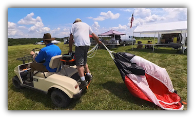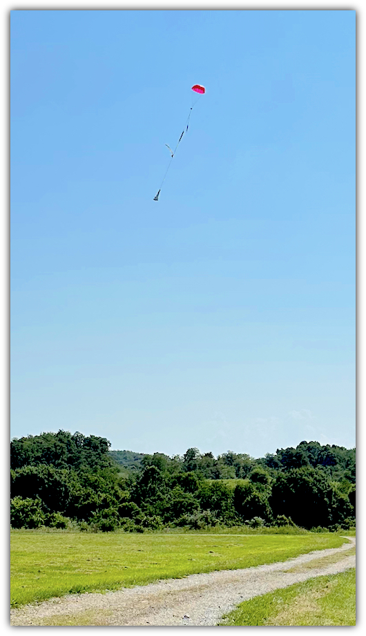 Mark Czerner and TR Garman test out a big parachute for TR's upcoming L3 flight scheduled for September.
