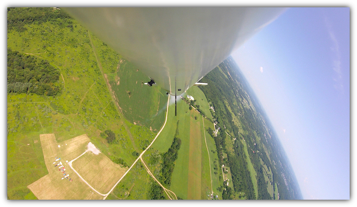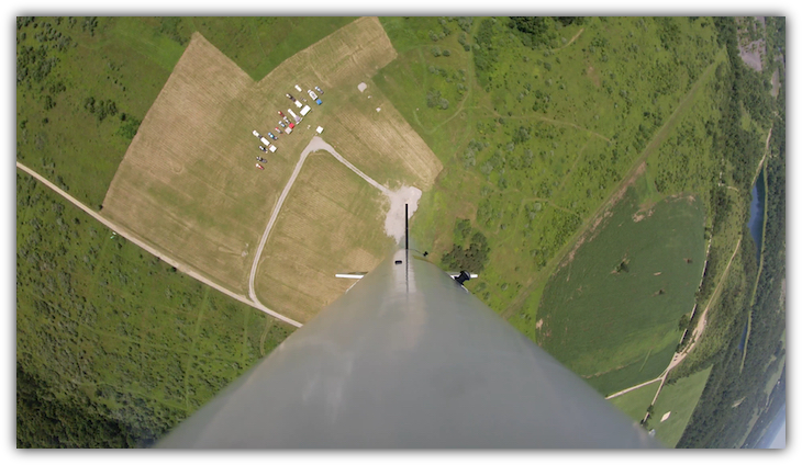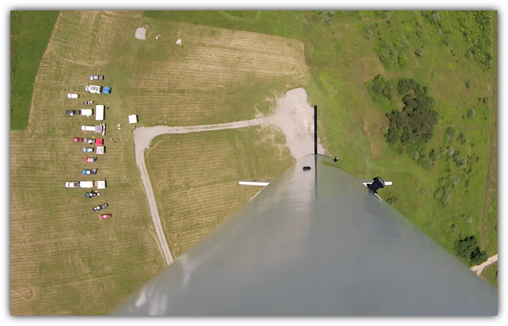 After clearing 3750' in altitude,the Honest John returns home for a soft touchdown.