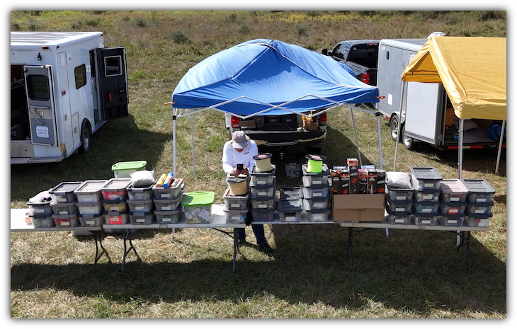 One might object to the piles of bins that Ken Allen of Performance Hobbies brings to our launches..... except that they are all filled with goodies that keep us flying.