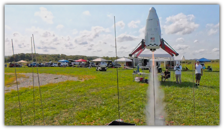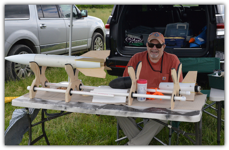 Ernie Walter's stubbie rocket goes off the high power pads.