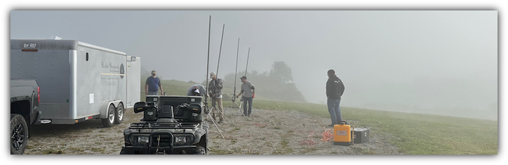 Scott Kissenger and Jerry Andre assemble one of the high power pads in the fog.
