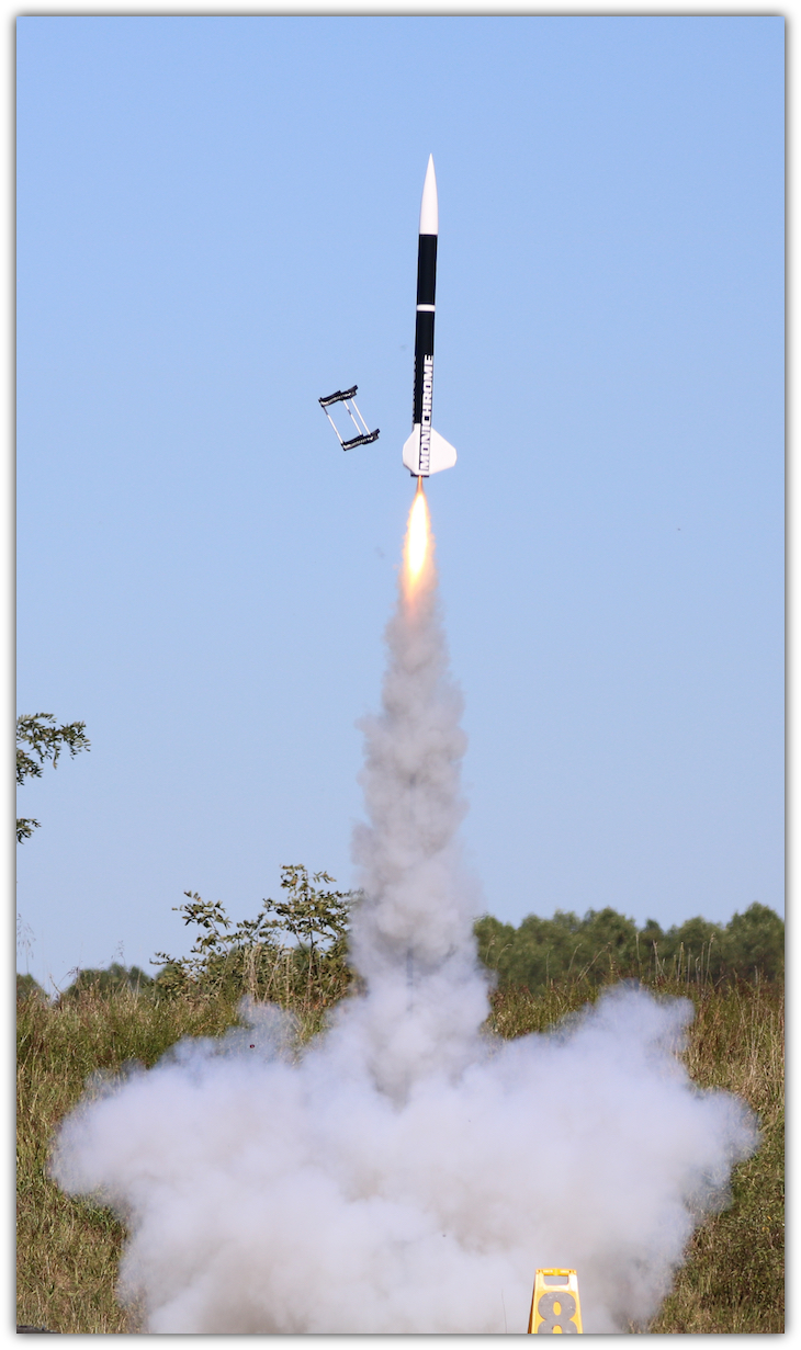 William "Curtis" Detweiler completes his flight for his Level 1 certification with his beautiful Monichrome rocket.