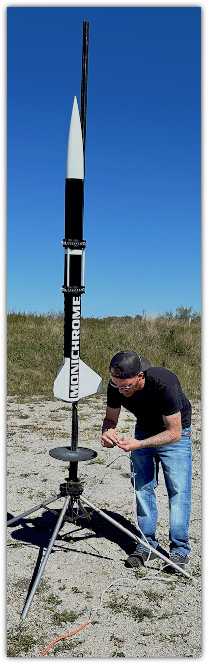 In addition to the modifications and rail guide, the Monichrome features an auto body paint job and custon vinyl graphics that make Curtis' bird one of the best looking L1 rockets ever to fly at the Dragon's Skull Field.