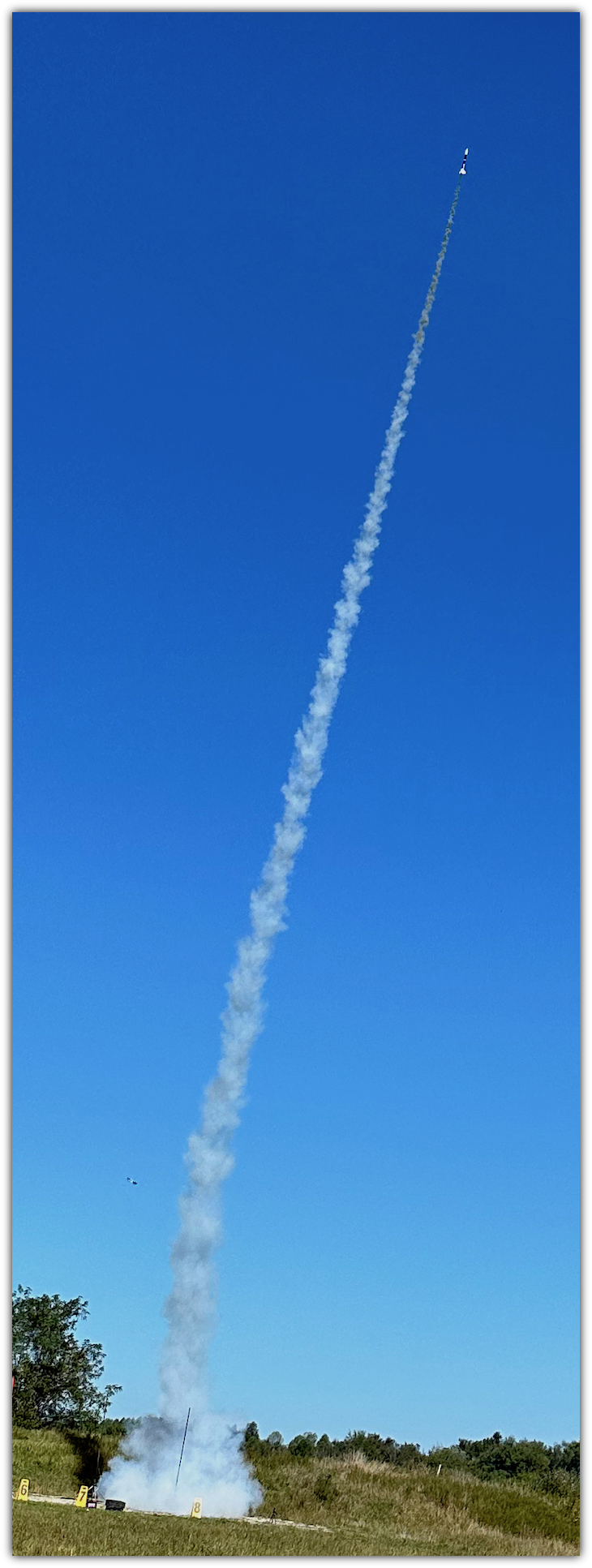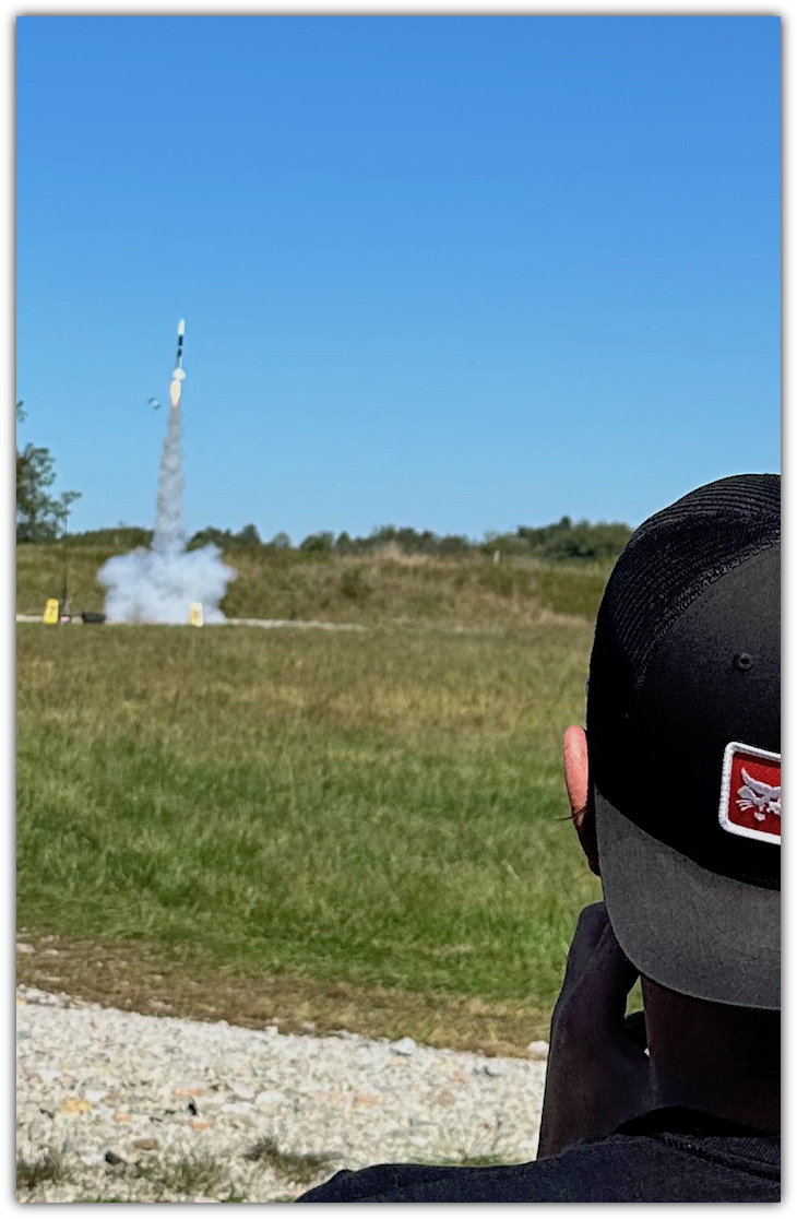 William "Curtis" Detweiler watches his Monichrome lift off of the high power pads on an H-180 for his L1 cert flight.