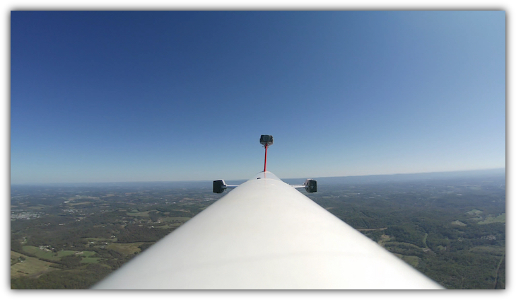 Even with all of the drag-inducing boxes mounted all over it, the L1 tracks straight thru the perfect blue sky.
