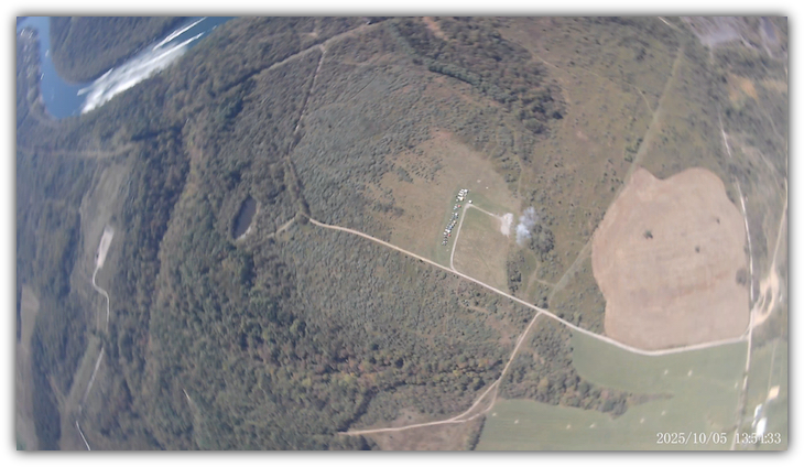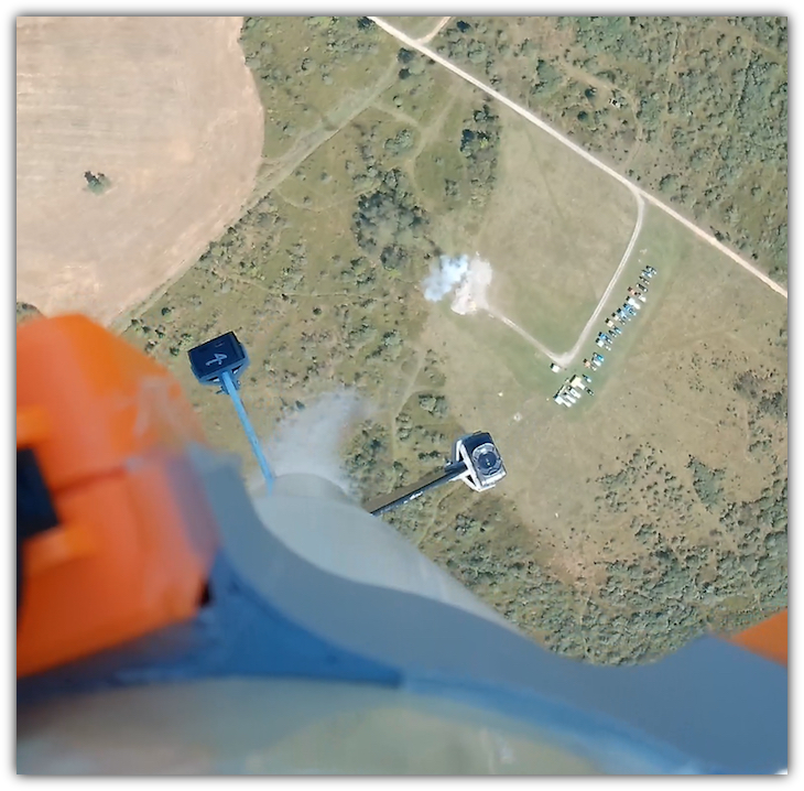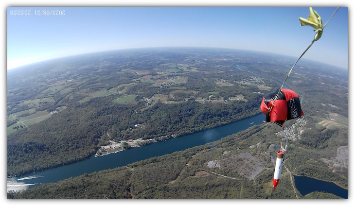 The cameras capture a nice shot of the river and surrounding landscape as the parachute slips out of the Chute Release at apogee. And No, it wasn't supposed to slip out at apogee.